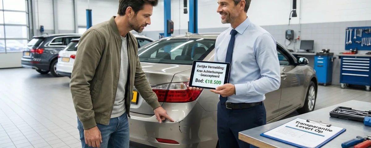 Het klinkt tegenstrijdig, maar eerlijk zijn over schade levert vaak een beter resultaat op. Niet omdat de auto meer waard wordt, maar omdat het proces soepel blijft en het bod realistischer is.